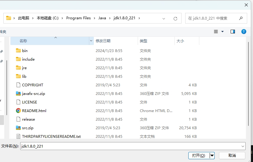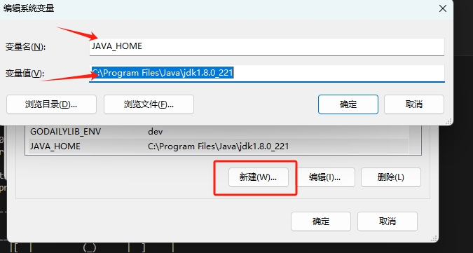 复制当前目录 C:\Program Files\Java\jdk1.8.0_221,新增到JAVA_HOME环境变量中